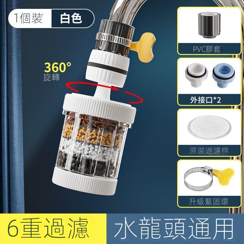 【新升級6重過濾】麥飯石水龍頭凈化器,360°旋轉,可替換,防濺水,方便清洗,過濾心用水更放心